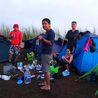 It's been Labor day when we hiked Mt. Talimitam together with our new partner and this was their first time to climb a mountain. They have been late for almost an hour, we assumed that they didn't knew how strictly we are during climb. We arrived the jump off around 1100H and we decided to took a lunch before we proceed to hike. It was a alluring weather when we came until the rain pour down when we reached the foot of the mountain. We begun to wore our raincoat and the others had their umbrella then we continued to climb until we reached the summit around 1700H. We wait the rain to stopped before we pitch our tent. One of our tent were filling by rain, fortunately, the rain stopped around thirty minutes after we arrived the peak and we immediately pitch our tent before the rain pour down again. After we took our dinner, new hiker came near our campsite and unforeseen, we knew them. Around 2000H, the socials started and we are chatting about life and love life. One of our colleague experiencing heart broken so we had to mutual him until she briefly forgot her relationship. The next day, weather were clear and we trek nearby mountain, Mt. Apayang. Its time for picture taking and video recording. Because of the elegant views, we start to descent with a hot weather around 1000H and our drinking water also fail gradually. Good thing, when we reached highlands, there was a store selling buko fresh and buko juice. While approaching the river, some of our buddy encounter leg cramps and its difficult for them to walk down, so we took the trek slowly until we hit the river around 1200H. We immediately prepared our lunch because all of us were hungry and thirsty. We relax our body and took a swim with other group of people. Around 1600H, its time to go home but we didn't expect Nanay Ancheng present us plenty of fruits. Its difficult to ride the bus that time so we decided to turn to Nasugbu bus terminal. The bus we ride going to the terminal was the same bus we ride to Manila.